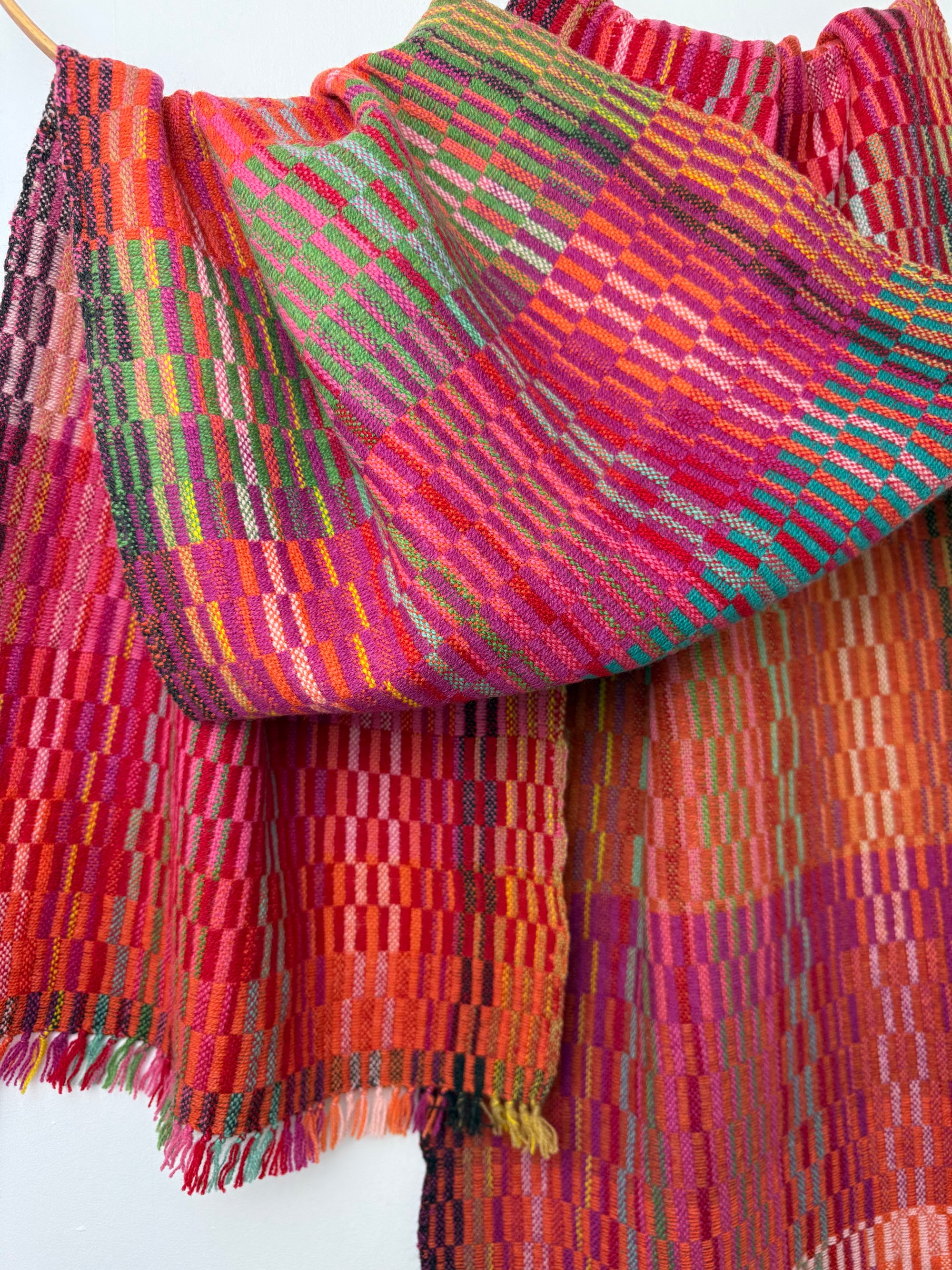 100% lambswool scarf hand woven on my preloved floor loom in my garden studio overlooking the North Cornwall coastline.