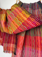 A beautifully textured scarf due to the intricate weave structure, it is also soft and warm.