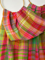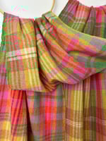Measuring 211 cms x 43 cms plus fringe, it is wide enough to wear over the shoulders.