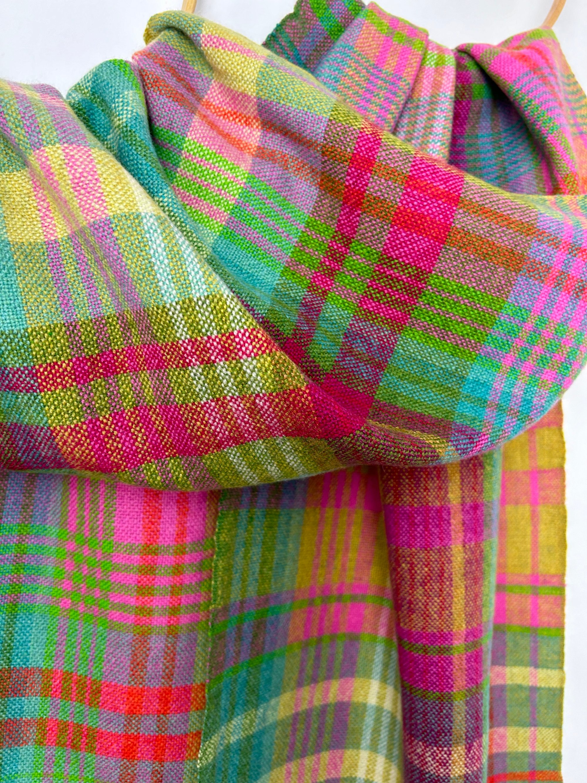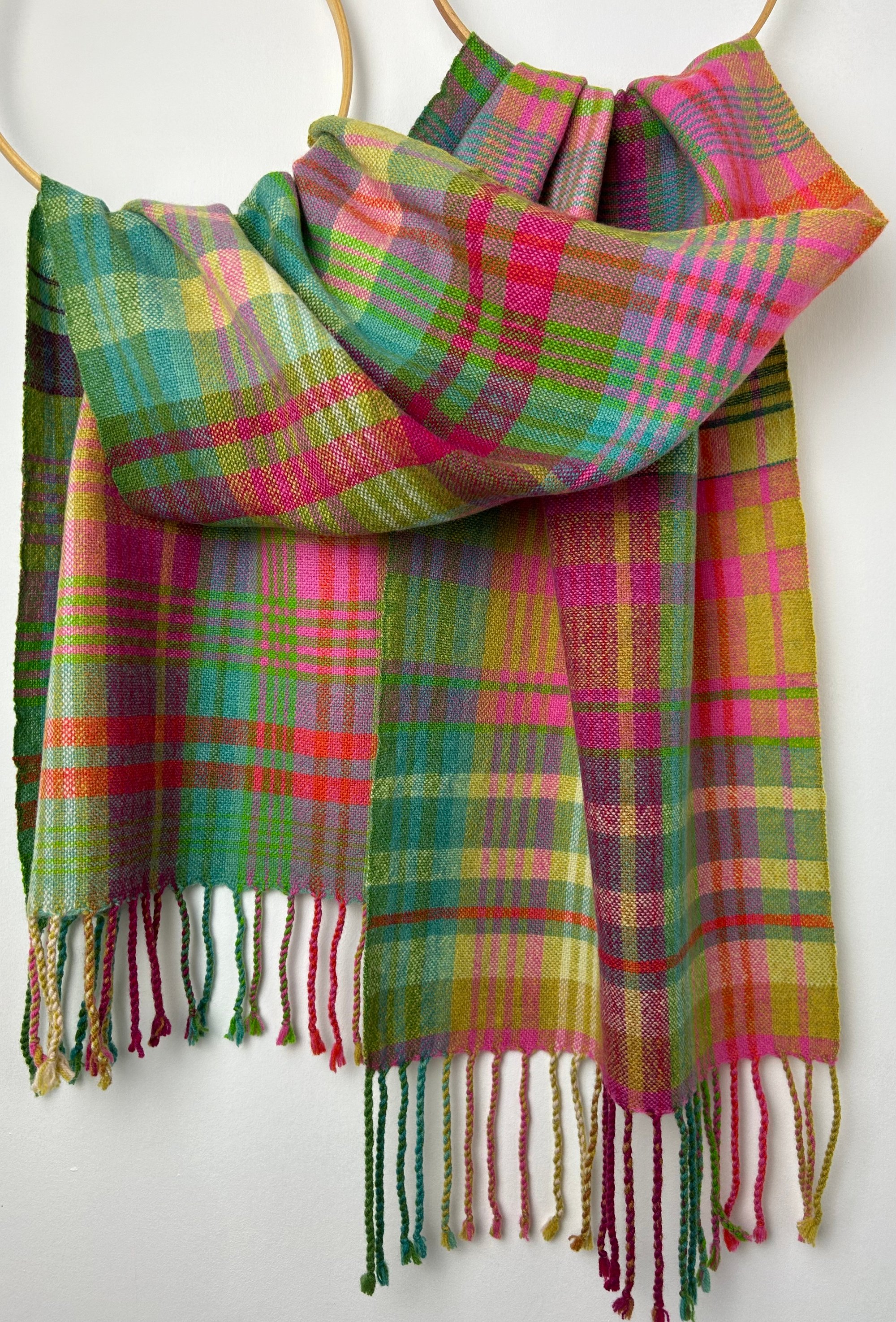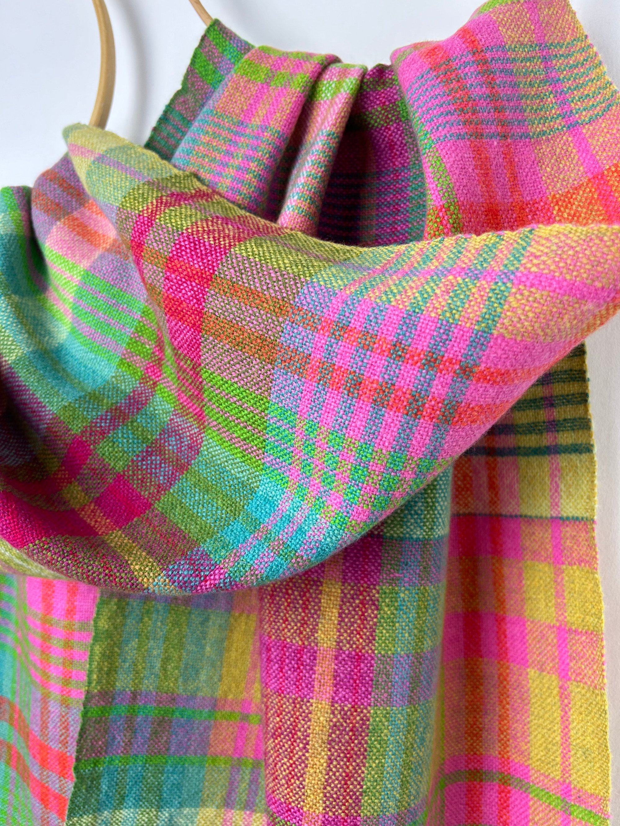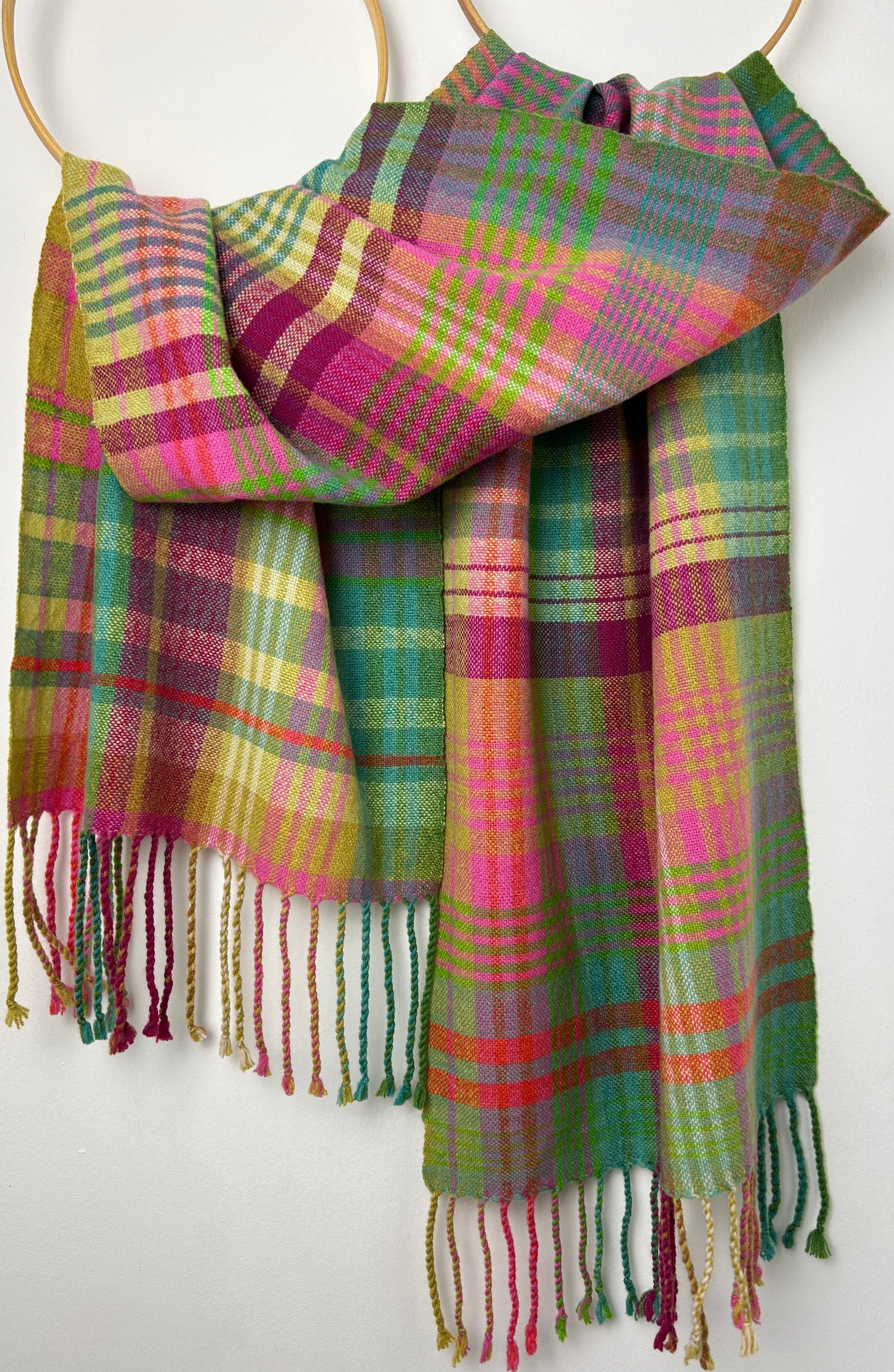 100% lambswool scarf/shawl, hand woven on my preloved floor loom in my garden studio overlooking the North Cornwall coastline.