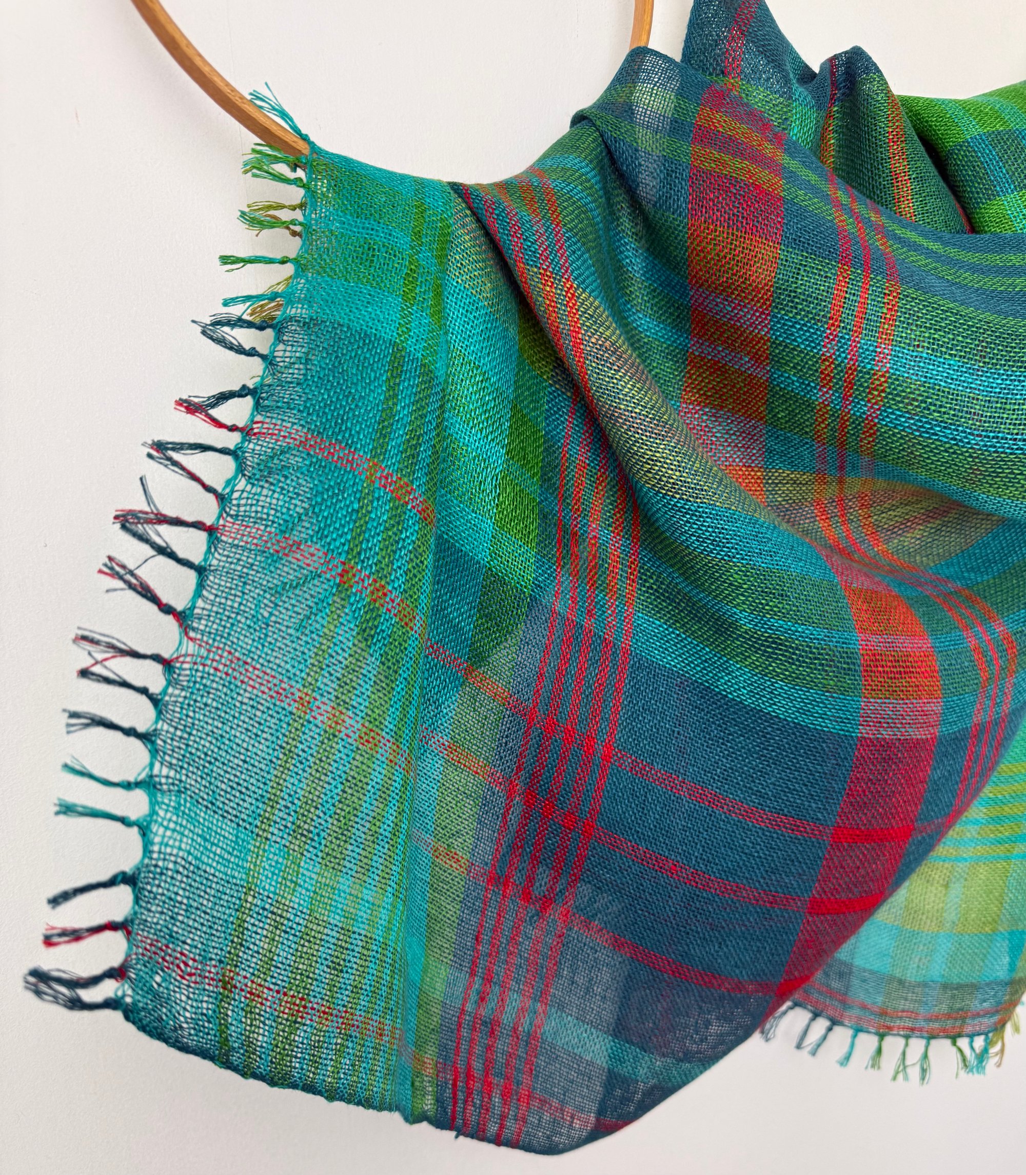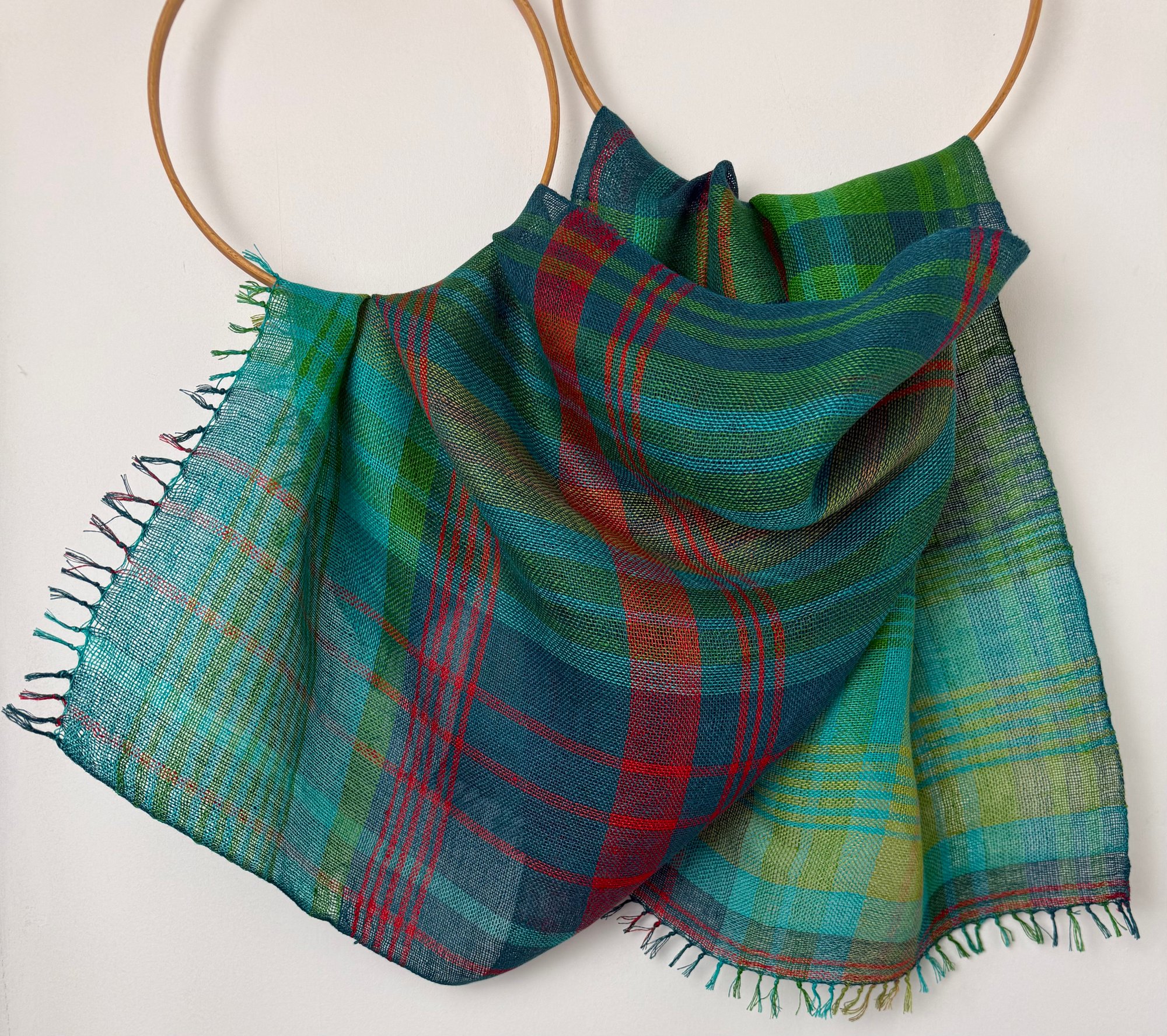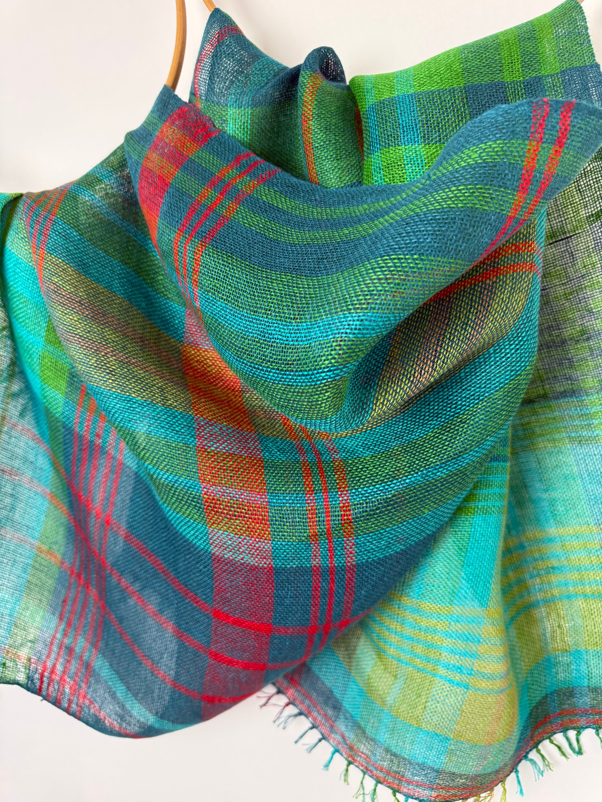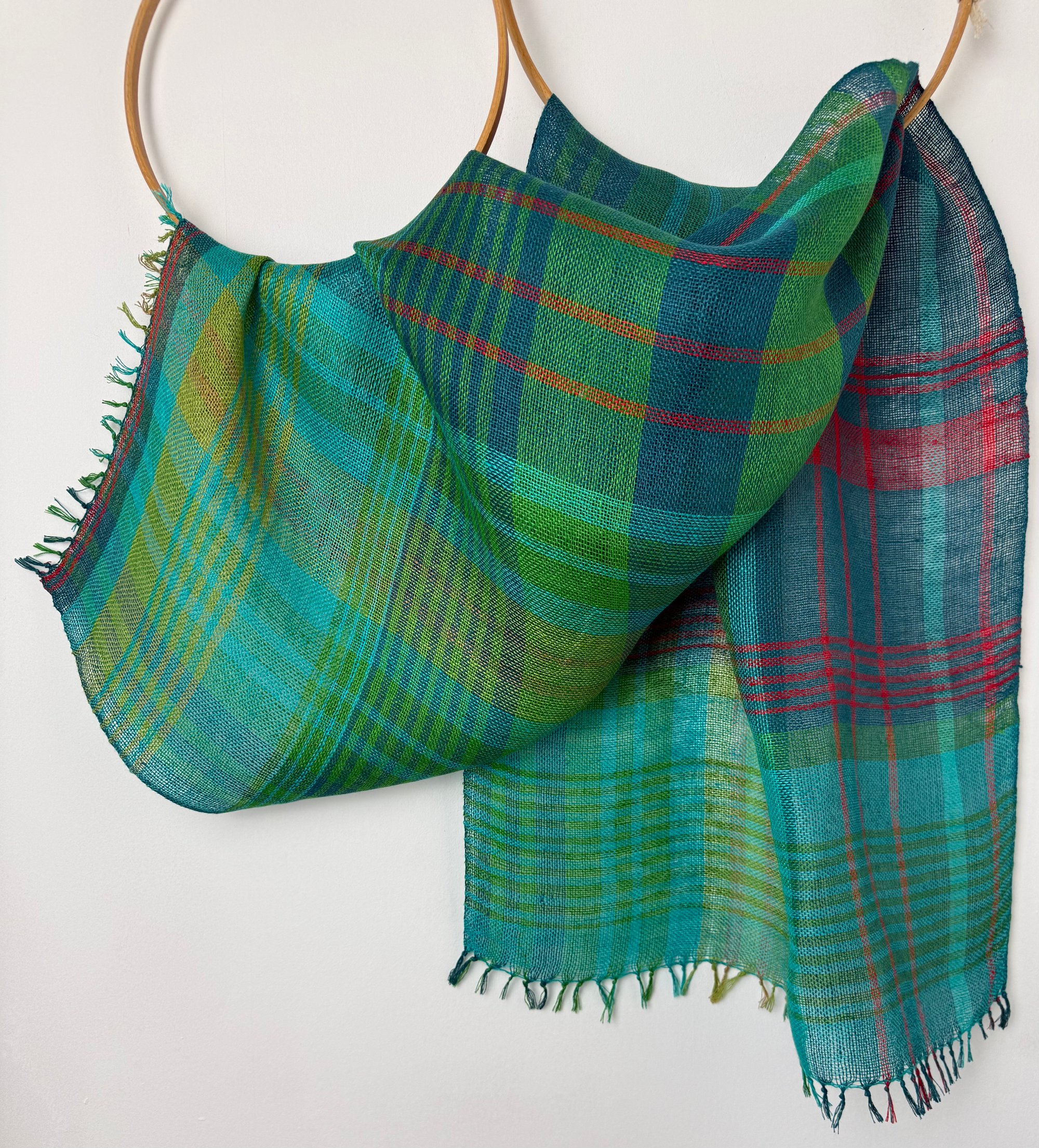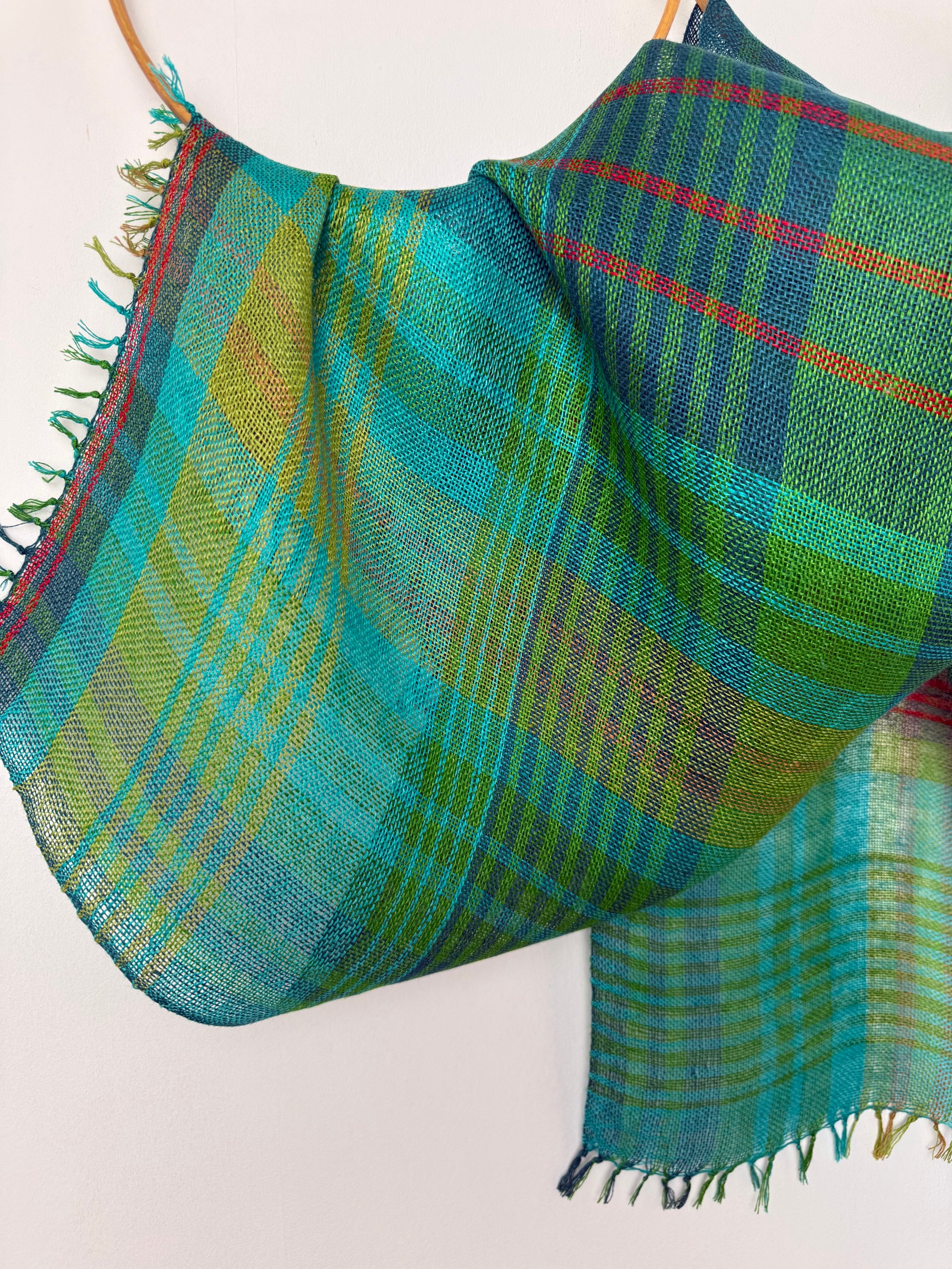 100% linen scarf hand woven on my preloved floor loom in my garden studio overlooking the North Cornwall coastline.