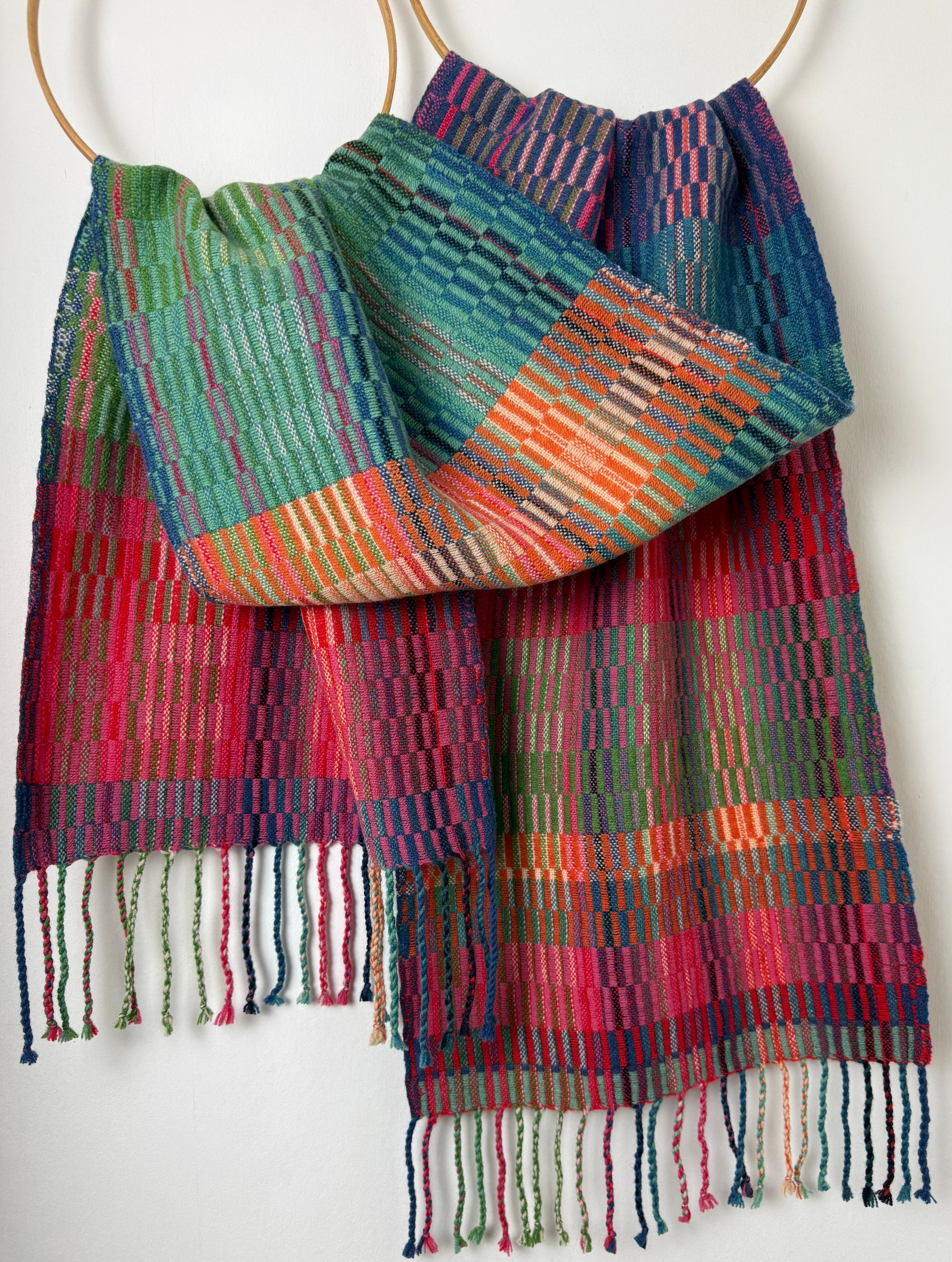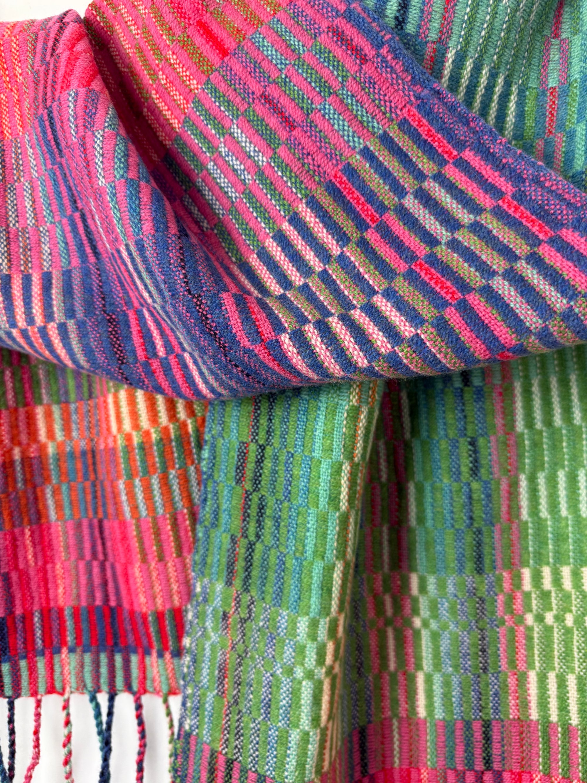 100% lambswool scarf/shawl, hand woven on my preloved floor loom in my garden studio overlooking the North Cornwall coastline.