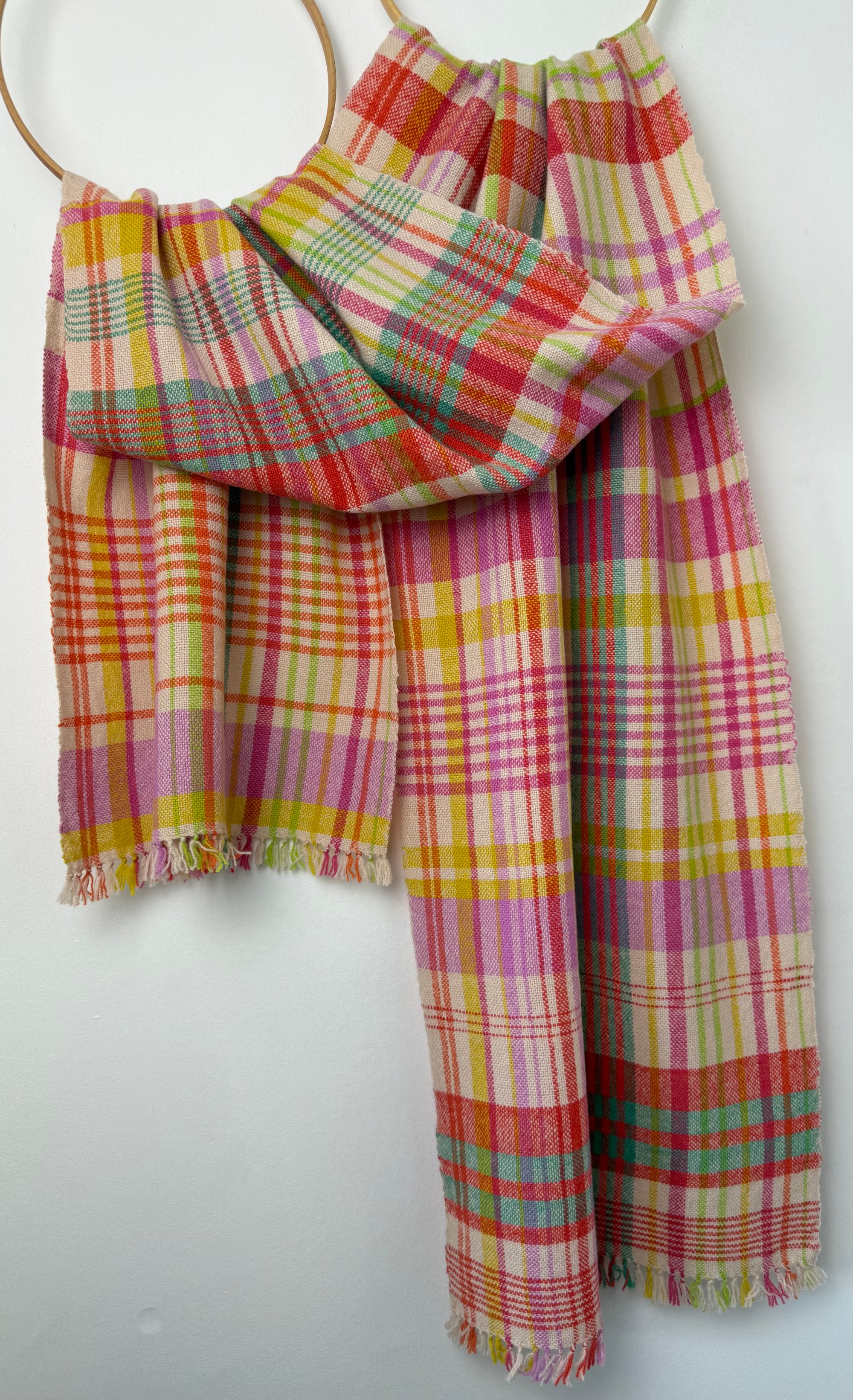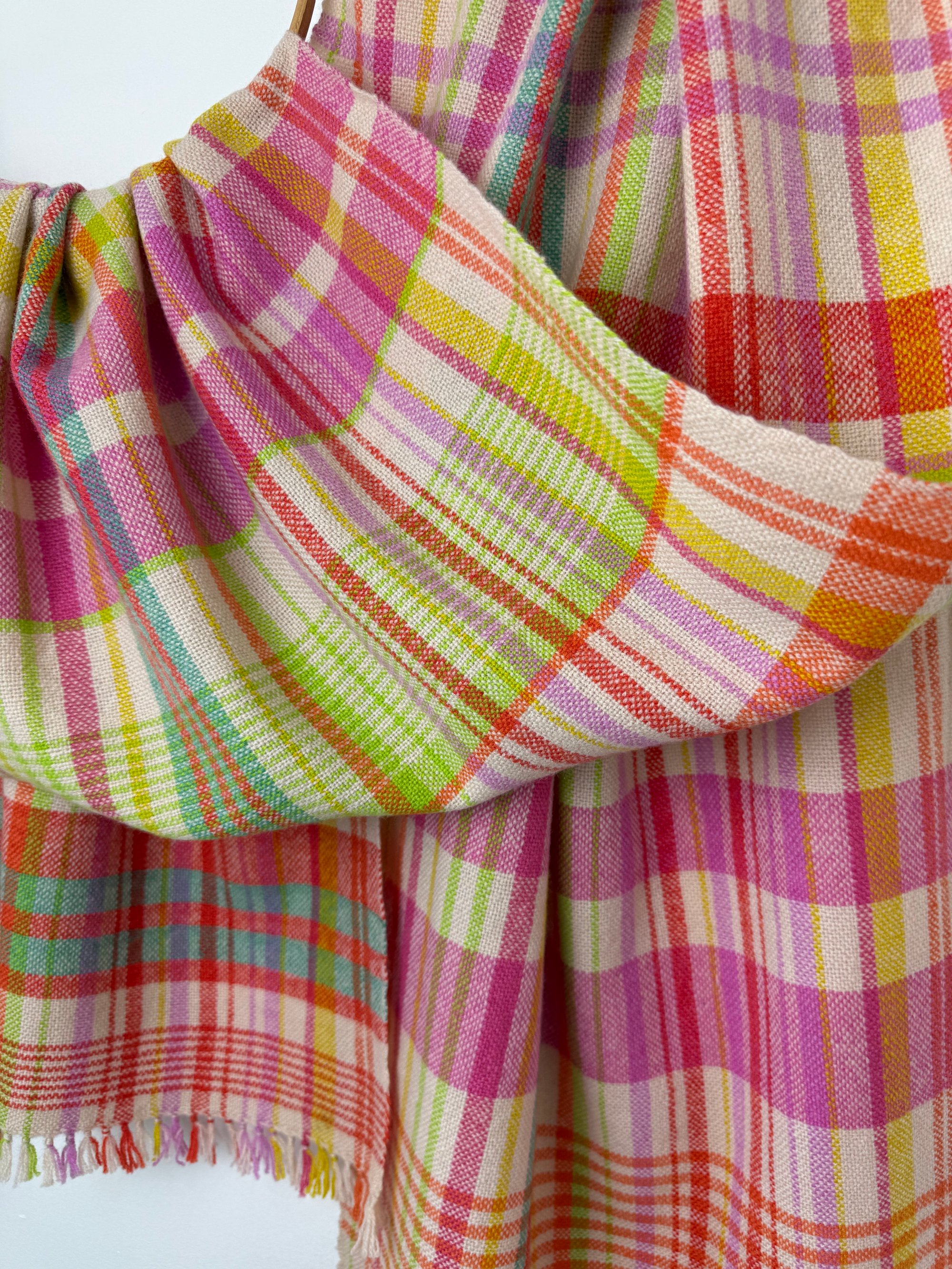 100% lambswool scarf/shawl, hand woven on my preloved floor loom in my garden studio overlooking the North Cornwall coastline.