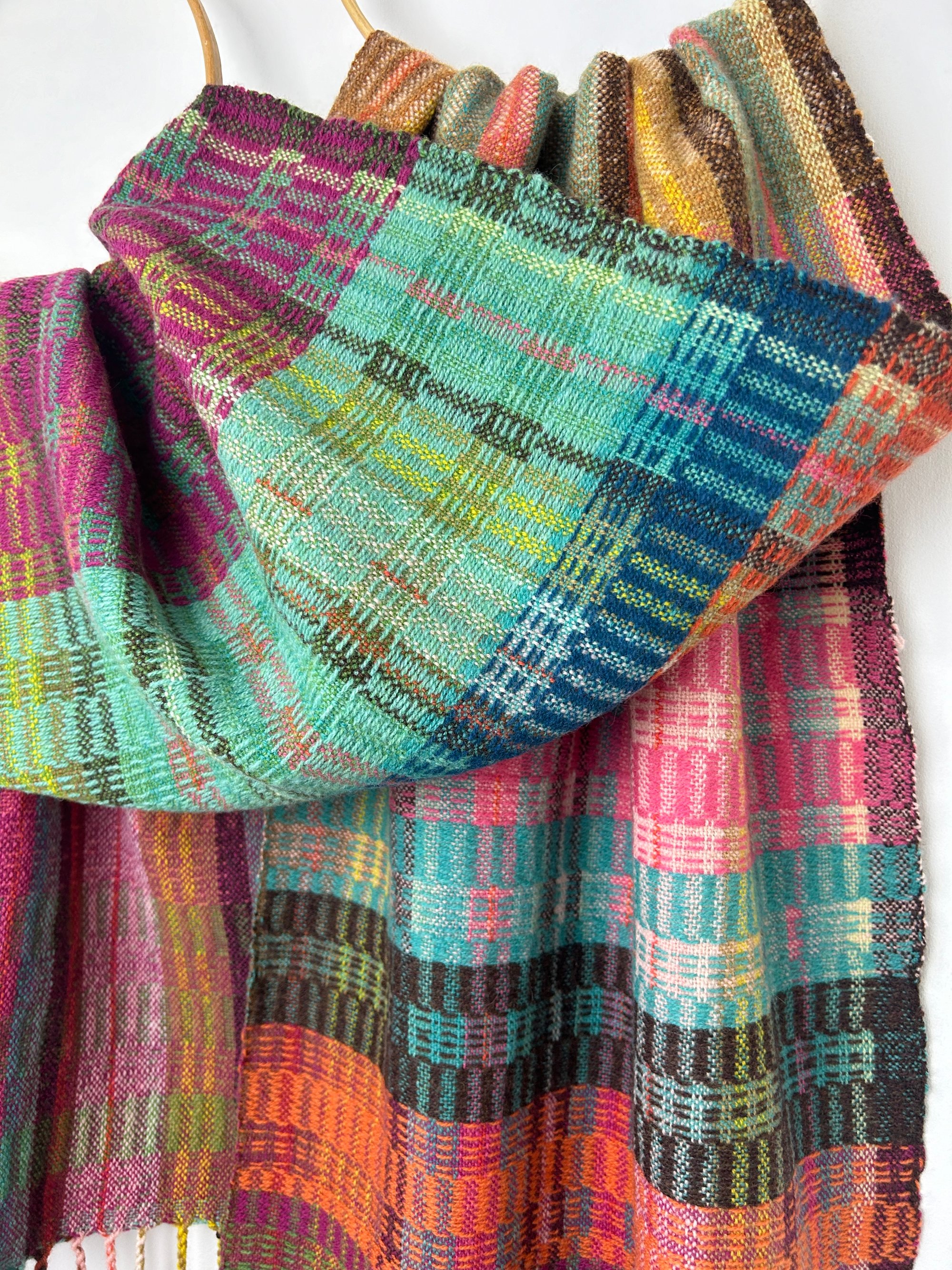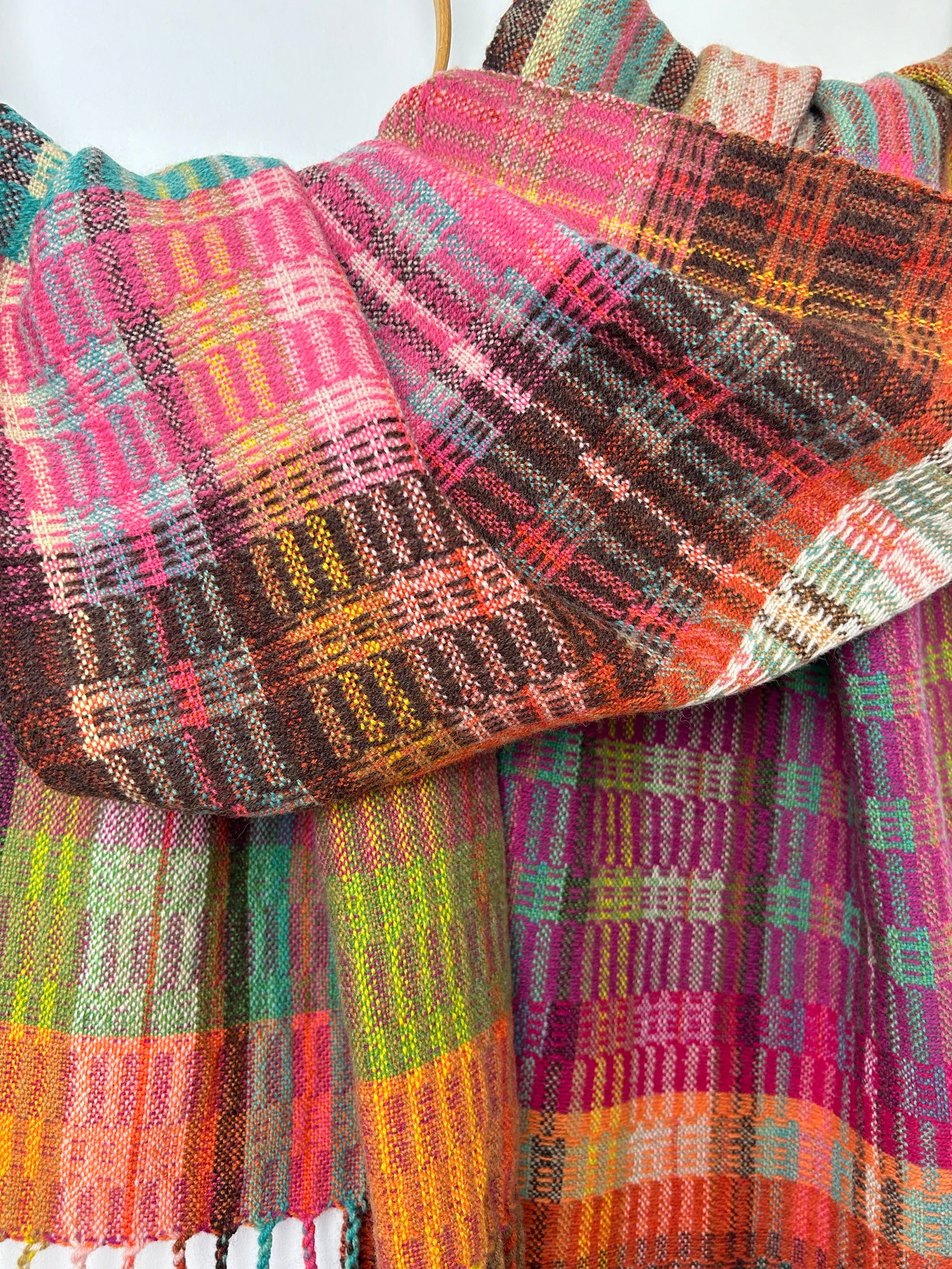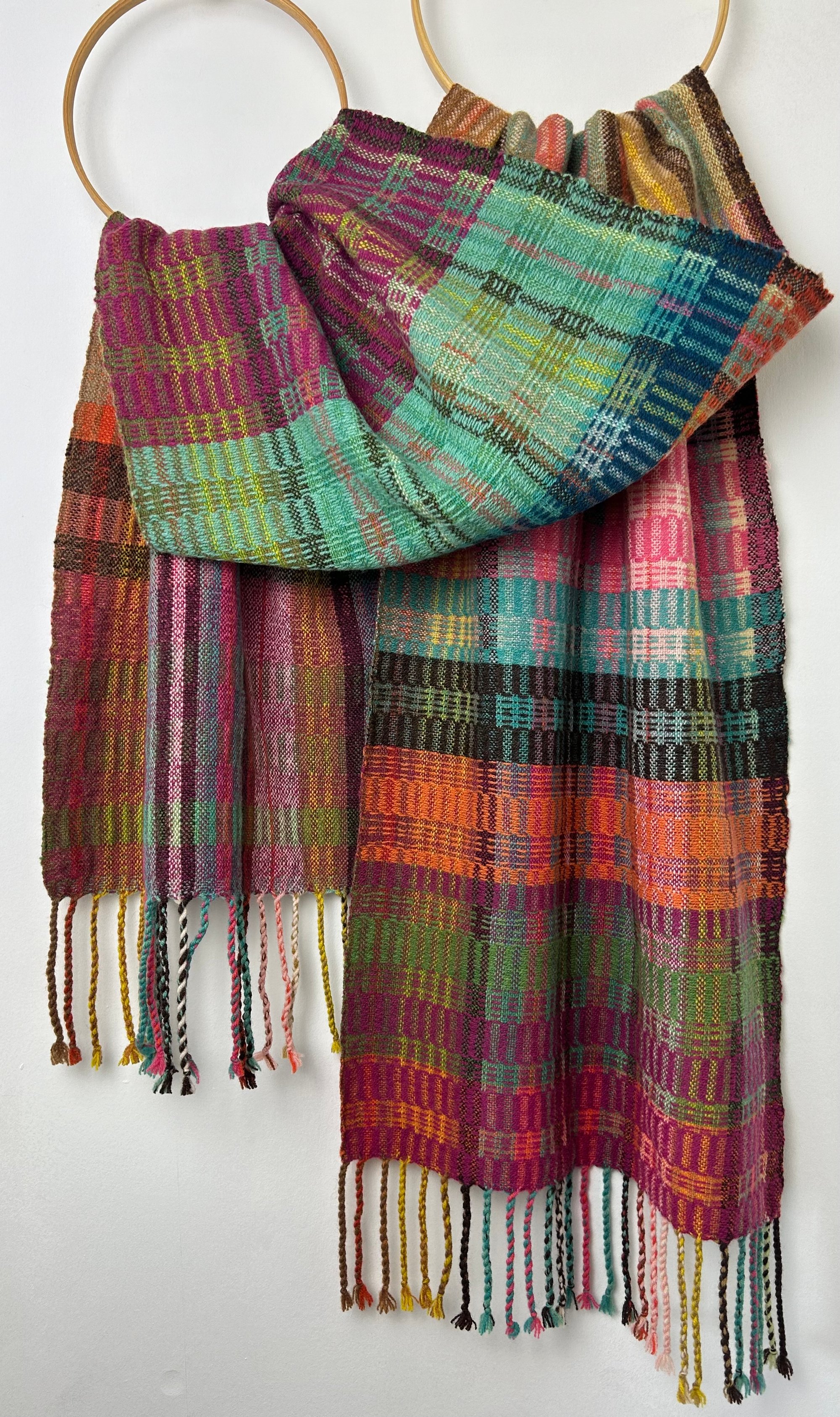 100% lambswool scarf/shawl, hand woven on my preloved floor loom in my garden studio overlooking the North Cornwall coastline.
