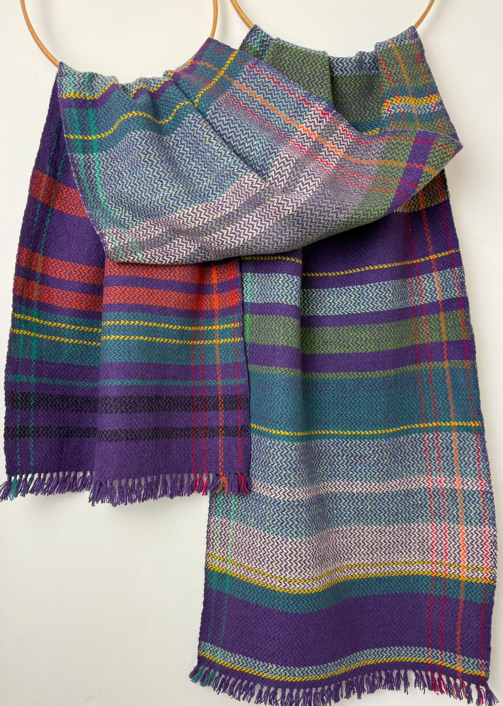 100% lambswool/silk scarf hand woven on my preloved floor loom in my garden studio overlooking the North Cornwall coastline.