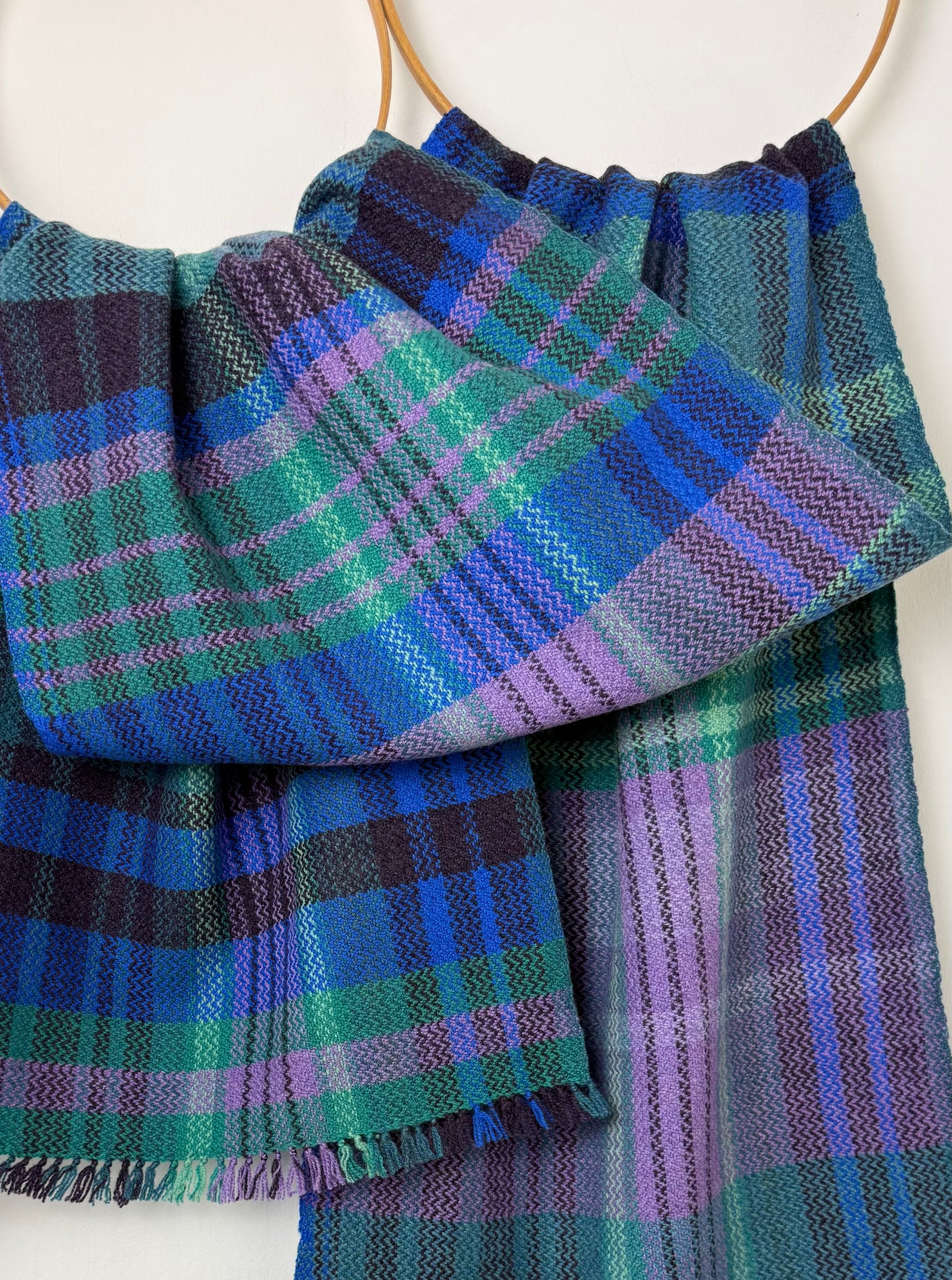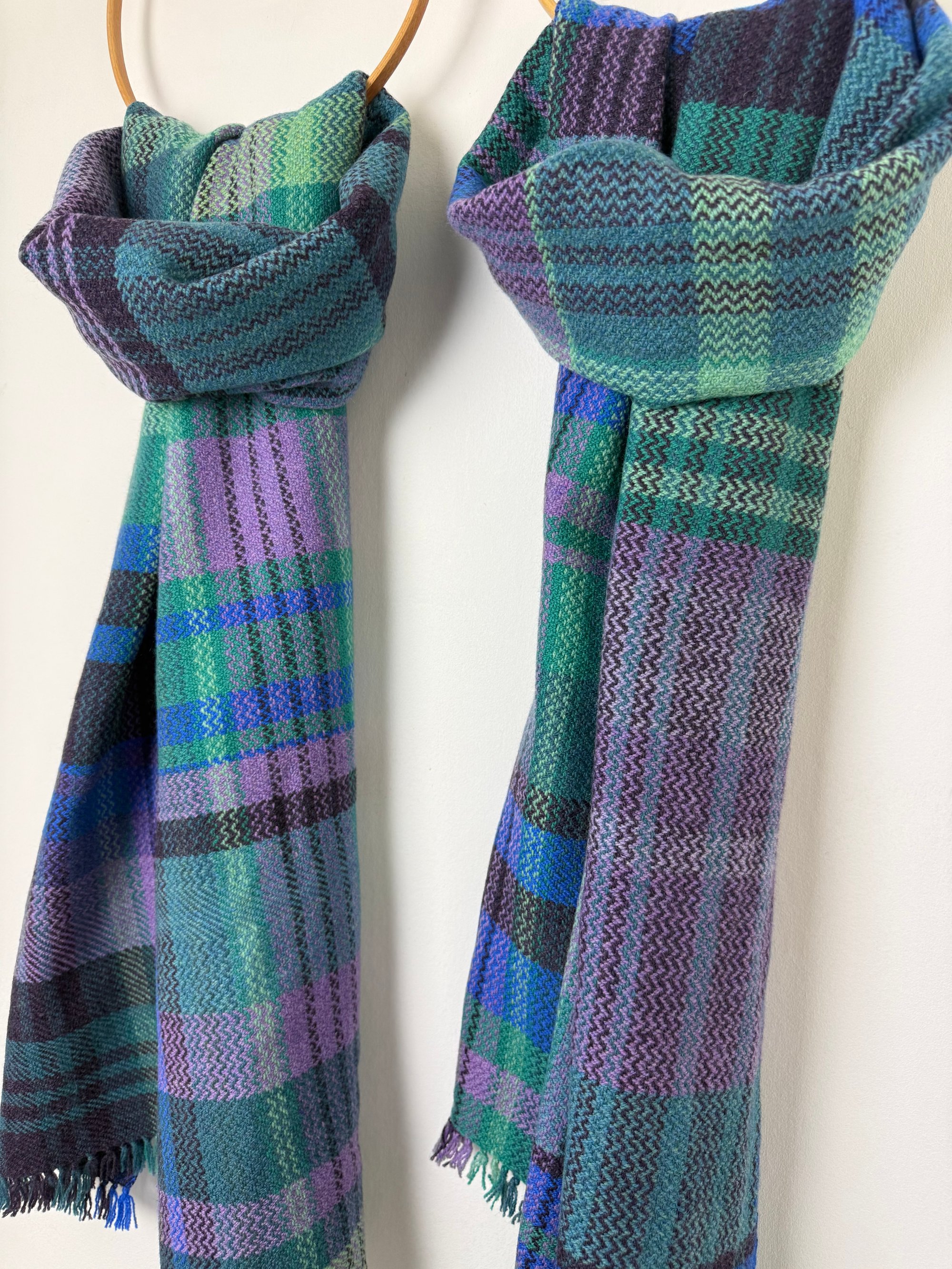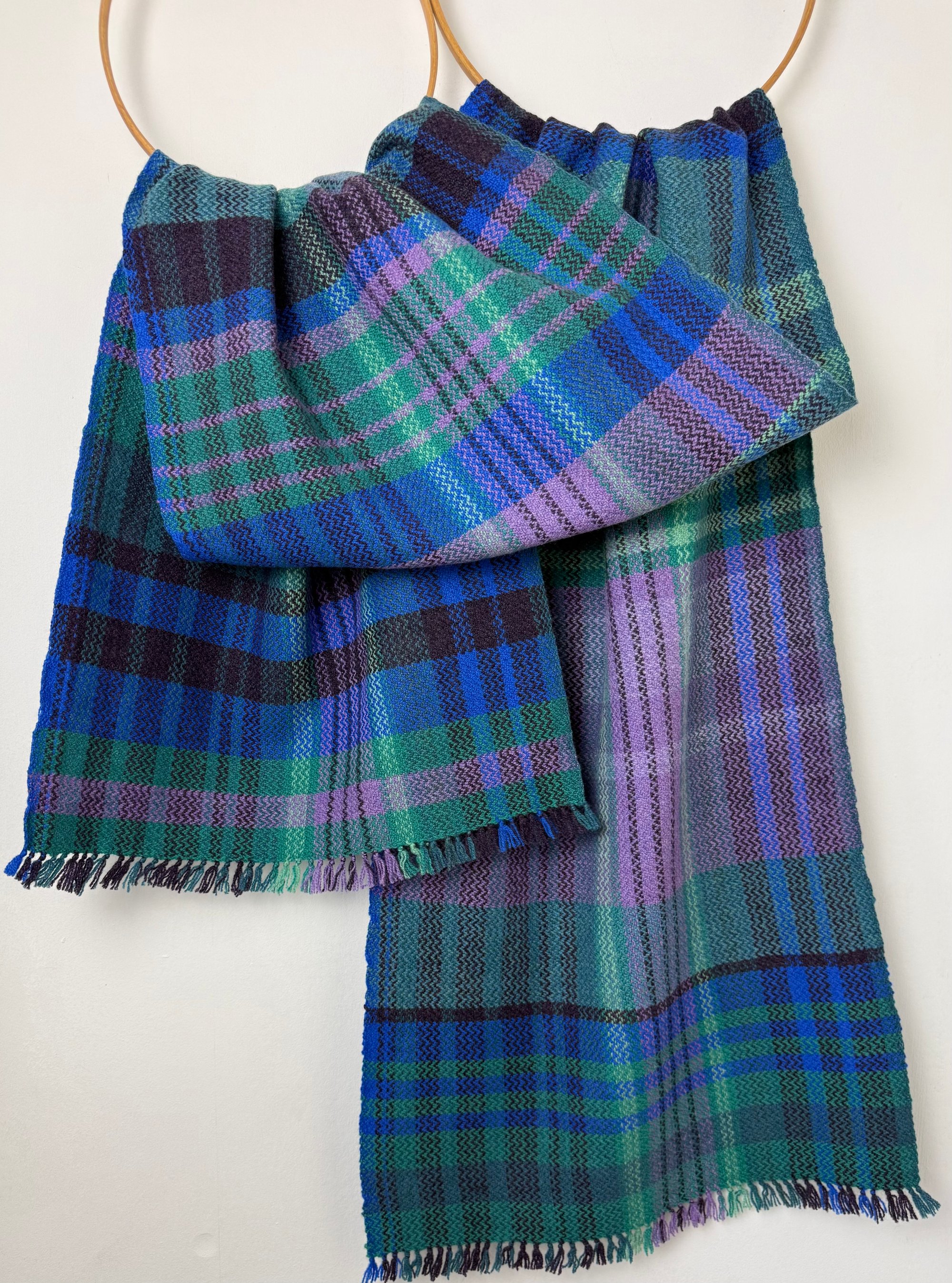100% lambswool scarf hand woven on my preloved floor loom in my garden studio overlooking the North Cornwall coastline.